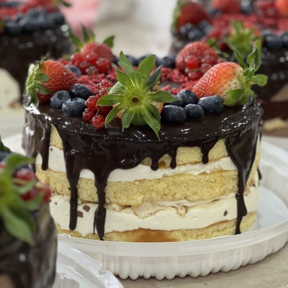 Белый кексовый бисквит, сливочно-сырный крем, Дакуаз с орехом, рубленный молочный шоколад.
