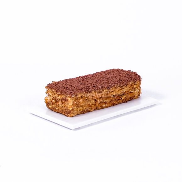 Слоеные коржи, сливочный крем с вареной сгущенкой и свежим рубленым фундуком. Цена за 1 кг