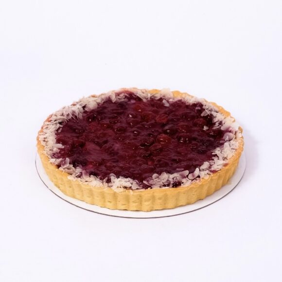 Песочная тарталетка, крем чиз, вишневый конфитюр