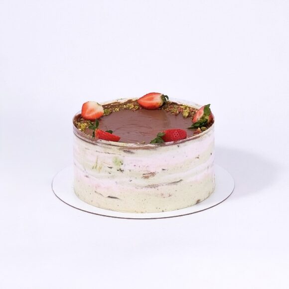 медовые коржи, фисташково-сметанный и малиново-сметанный крем, ганаш на основе молочного бельгийского шоколада